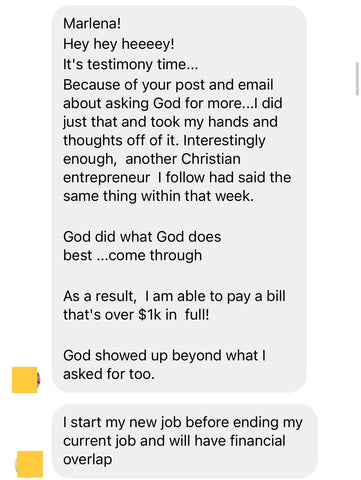 What followed was a slew of testimonies of people sharing how they acted on what I shared in that post (as well as this one) and God "radically" met a need for them. Here are a few of their testimonies: